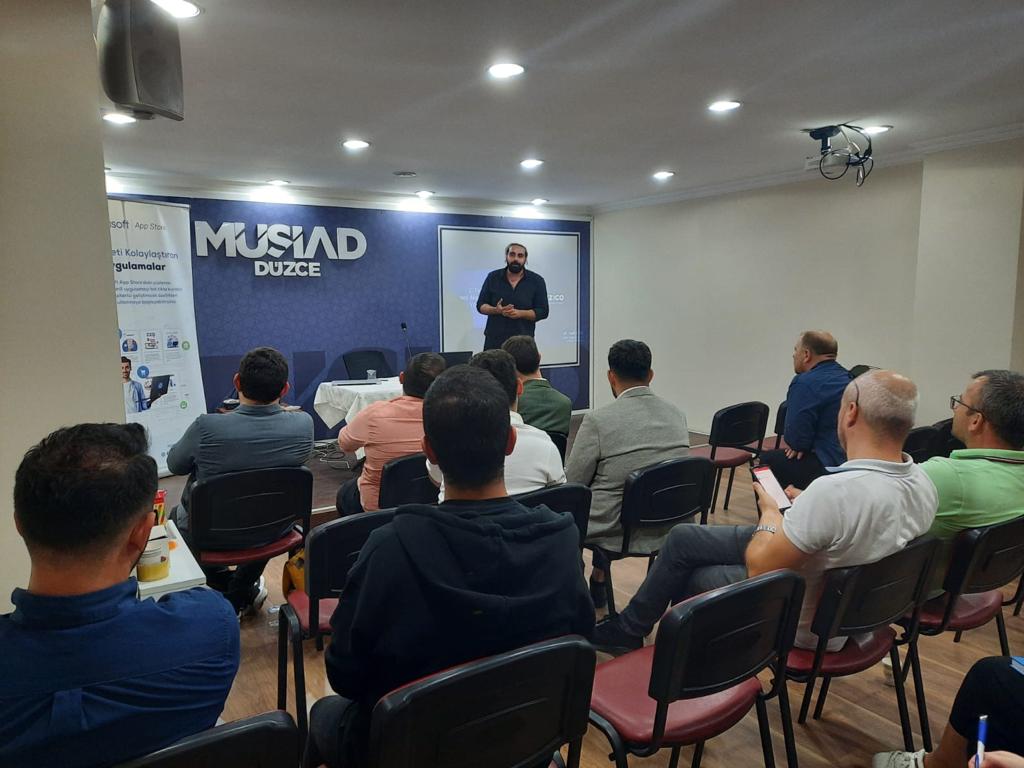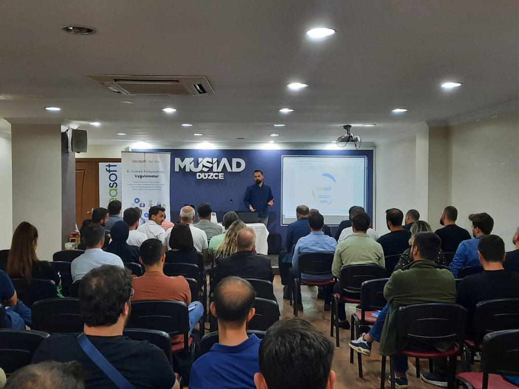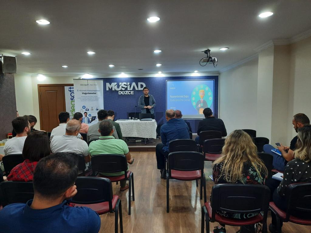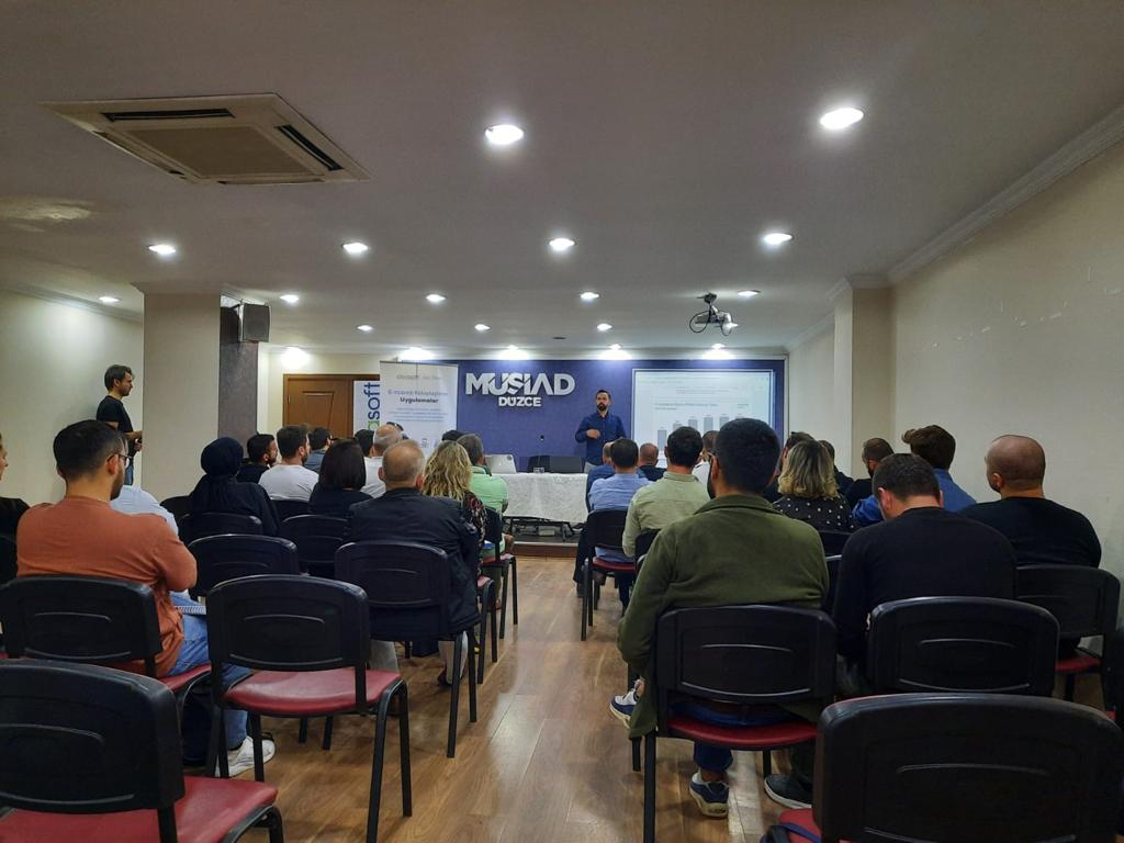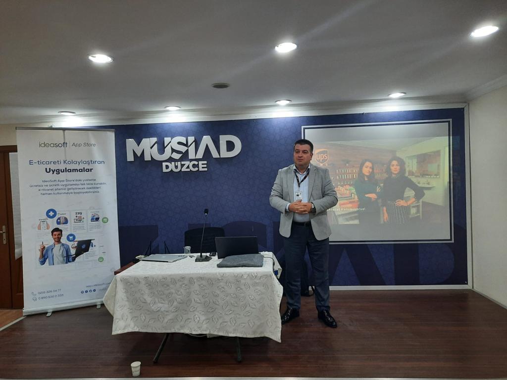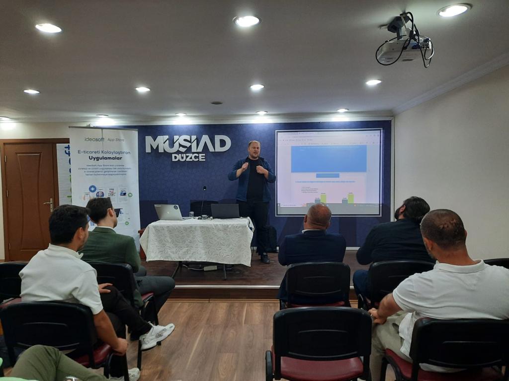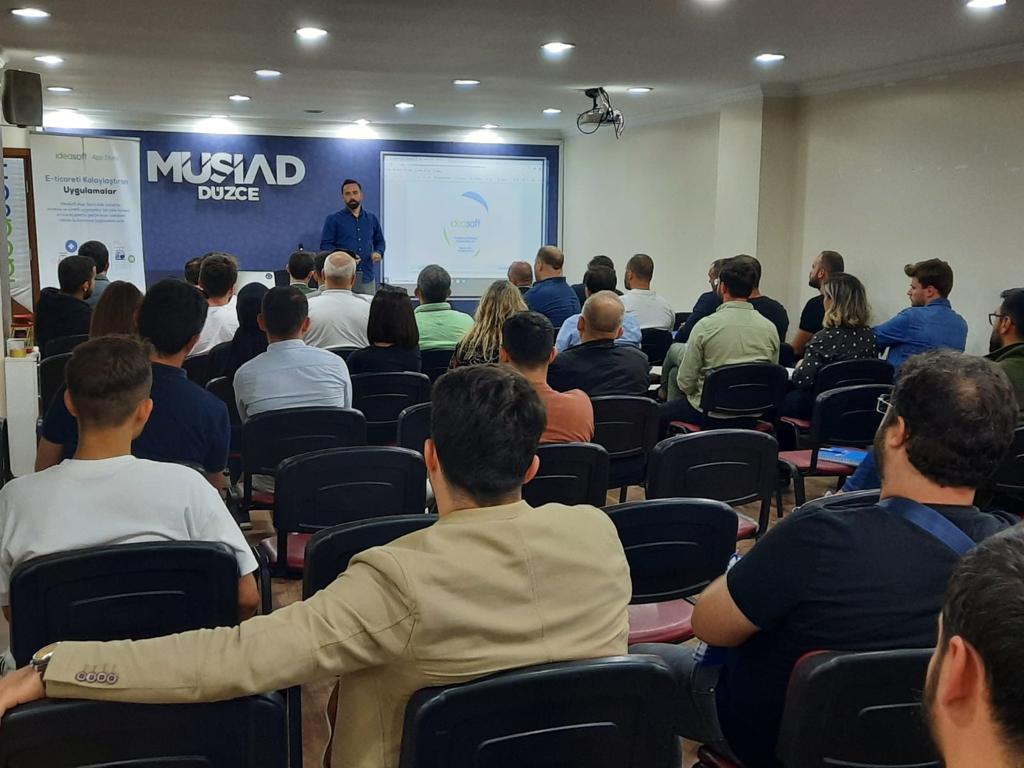 Müsiad Düzce Şubesi Konferans Salonu’nda gerçekleştirilen e-ticaret etkinliğinde, Serbay Interactive Ajans Başkanı Görkem Özdemir, IdeaSoft Kanal Satış Müdürü İbrahim Vıcıl, Sopyo Entegrasyon Kurucu Ortağı Ender Gazel, Iyzico Proje Yönetici Mehmet Selim Dil, UPS National Account Manager Furkan Koltuk, girişimcilerin e-ticaret ve e-ihracatta adım atma süreçlerinde karşılaşabilecekleri zorlukları, gidilecek yol haritasını ve plan ve bütçe yönetimi ve gibi konuları ele alarak katılımcıların sorularını yanıtladı.
